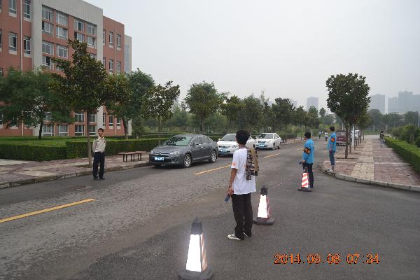 为确保迎新期间校园交通畅通,保卫处积极联系地方交警部门给予支持。交警全天候在校区及周边道路执勤,疏导校园内外以及周边交通。保卫处在学工部支持下,调集了20名学生志愿者,在校内各个交通要道进行管制和疏导。从新生报到一开始,新生家长的私家车数量巨大并源源不断地驶入校园,造成未央校区和学生生活区几度堵死,“请向左转”、“请向右转”、“请前行”…在校园各路口和报到点,只要有需要提供帮助和疏导交通的地方,都有保卫处安保人员和学生志愿者的身影,他们从清晨到傍晚,始终坚守在工作岗位上,一天执勤达12小时以上。几天下来,保卫处的同志们嗓子哑了,腿肿了,胳膊酸了,只为迎新工作顺利进行,只为校区车流畅通无阻,只为广大师生安全和放心。