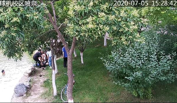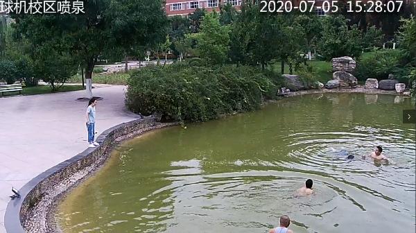 2020年7月5日下午15时25分,医学技术学院两名女学生在未央校区喷泉旁边向水中投食,其中一名学生在伸手抓捞时不慎滑入水中,在挣扎中逐渐滑入湖水中心,另一名学生企图营救无果。 我处监控值班人员第一时间发现异常,立即通过对讲机呼叫周边岗位值班及巡逻人员,15时27分左右6名一线队员赶赴现场,迅速展开营救,其中3名队员立即从不同方向跳入水中向落水学生靠近,将其拖拽至岸边,进行简单急救,同时安排巡逻车前往校医院接医务人员赶至现场营救,经共同现场抢救,该落水学生生命体征逐步恢复正常,安排该学生前往校医院进行进一步检查。