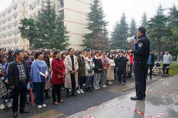 为进一步增强师生应对火灾突发事件时的应急处置能力与自救、自护能力,落实校园火灾救援、疏散预案,我校于11月17日中午在未央校区生活区5号公寓进行了消防应急疏散演练。副书记熊冬梅出席了本次活动,保卫处、学生处、后勤保障处相关工作人员及5号公寓全体学生共同参与了本次演练。 12时30分,保卫处在接到火灾报警后第一时间组织全员奔赴现场,学生生活区值班人员及就近巡逻人员立刻对火灾现场进行控制,并协助公寓管理员迅速打开安全通道,引导学生快速、有序地进行疏散。一分钟左右,全体人员到达指定位置,警戒组立即封锁火灾现场,疏散组继续引导学生有序撤离,灭火组及校卫队义务消防员穿戴全套消防装备,逆流而上,冲进学生公寓对火情进行扑救。