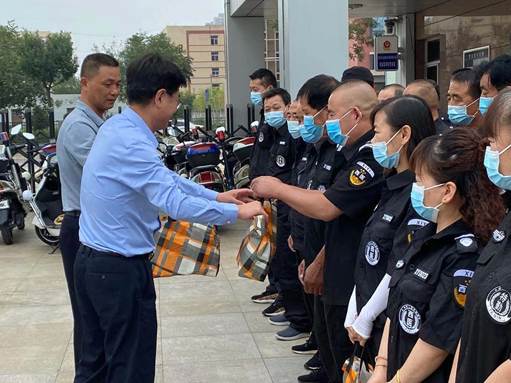 副校长姚文柱为暑期保卫人员送上慰问品