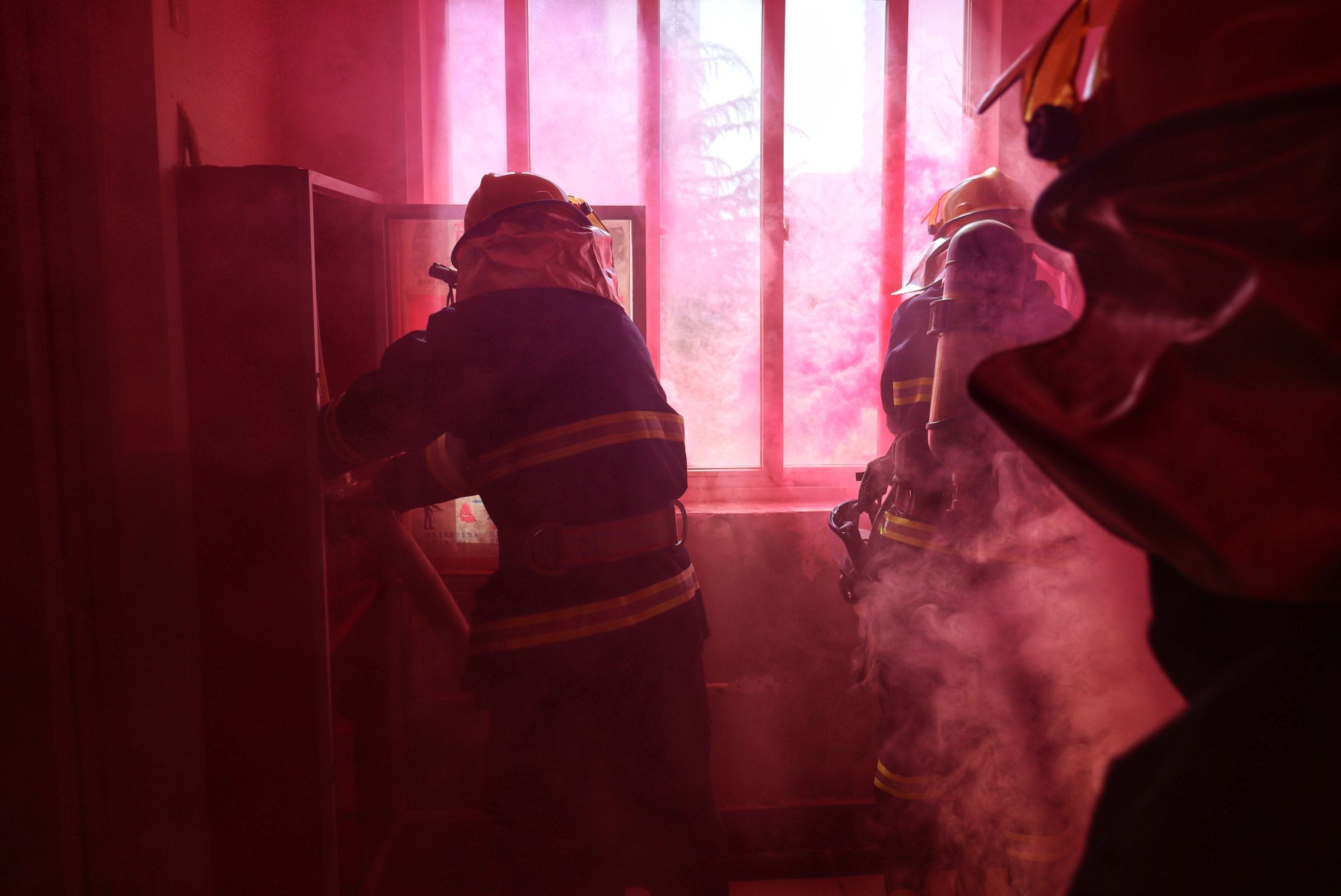 保卫处救援人员确定火情位置并进行灭火