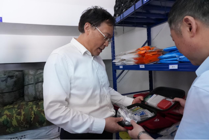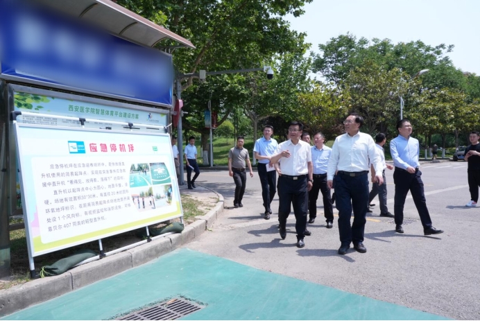 陈长春一行实地走访了未央校区应急停机坪、应急物资储备库、应急供水站、应急供电站等重点部位,对应急避难场所标识标牌设置、功能分区、应急物资储备及配套设施等进行了现场检查。考察组对学校应急避难场所建设工作给予充分肯定,针对部分功能区域划分、设备检修维护等提出了指导性建议和要求。